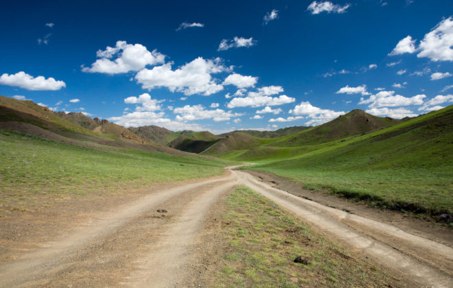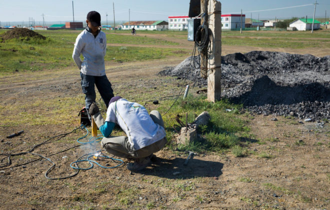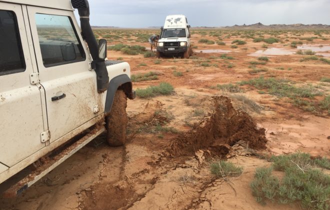 Wir rumpeln und schaukeln uns von Schlagloch zu Schlagloch. Die Wege in der Mongolei sind unergründlich, undefinierbar und einfach schrecklich. Die Schläge setzen dem Auto förmlich zu. Der Landy leidet und wir mit ihm. Nach sechs Tagen Offroad fahren, ertönen unliebsame Geräusche unter dem Auto…