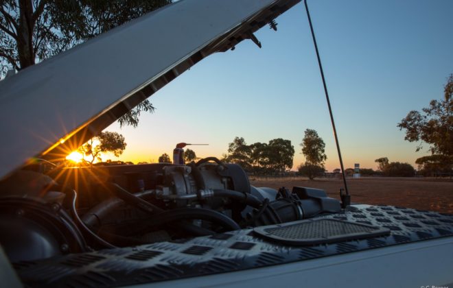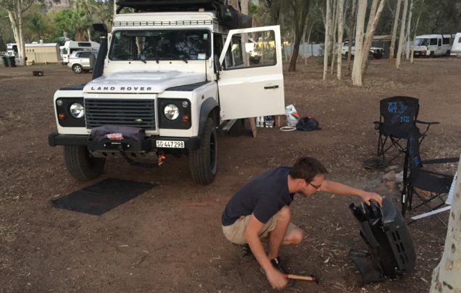 Unser Landrover tropft – mal wieder. Nur leider ist es dieses Mal keines der bekannten Wasserlecks. Mit denen sind wir in der Zwischenzeit ja gut vertaut. Nein, kurz bevor wir uns auf die 1200 Kilometer lange Great Central Road (Outbackpiste) begeben wollen, entdeckt Cyrill verdächtig…