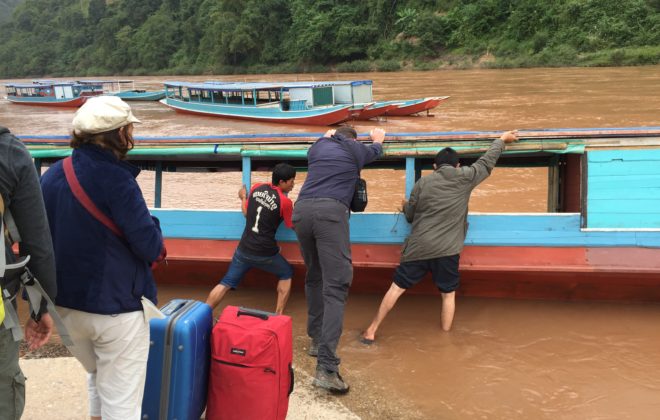 Wir entschieden uns von Muang Khua nach Nong Khiaw per Slowboat zu reisen. Gemäss dem Travelblog von «Rusty Compass» soll dies eine der schönsten Flussfahrten in Laos sein. Die Reise dauerte alles in allem etwa 7 Stunden. Schön ist sie wirklich, die Flussfahrt. Einheimische steigen…